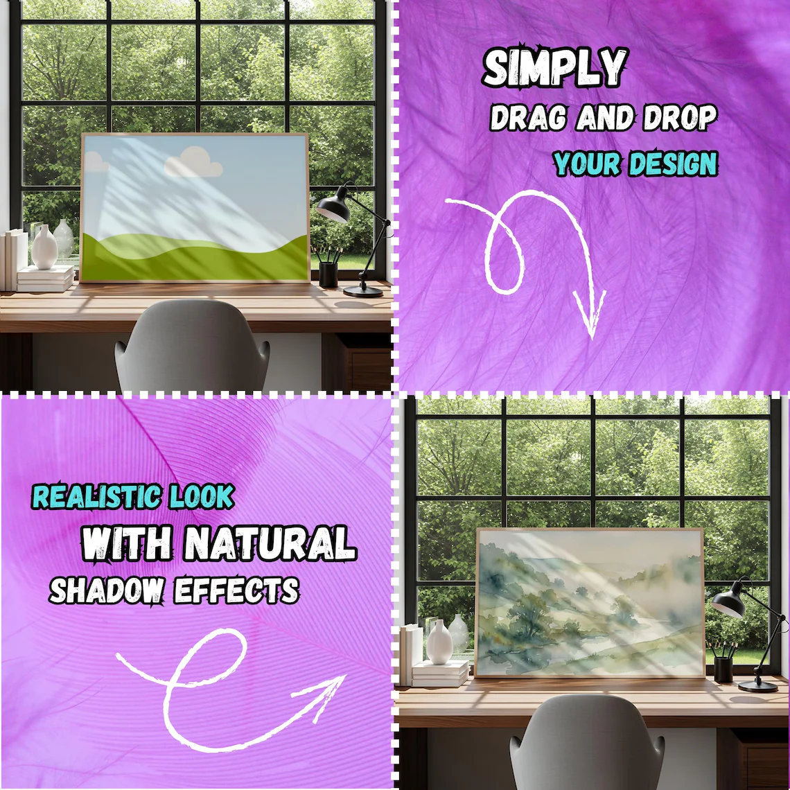 100% Canva Drag & Drop: Thanks to Canva’s smart frames, inserting your artwork takes literally 2 seconds.