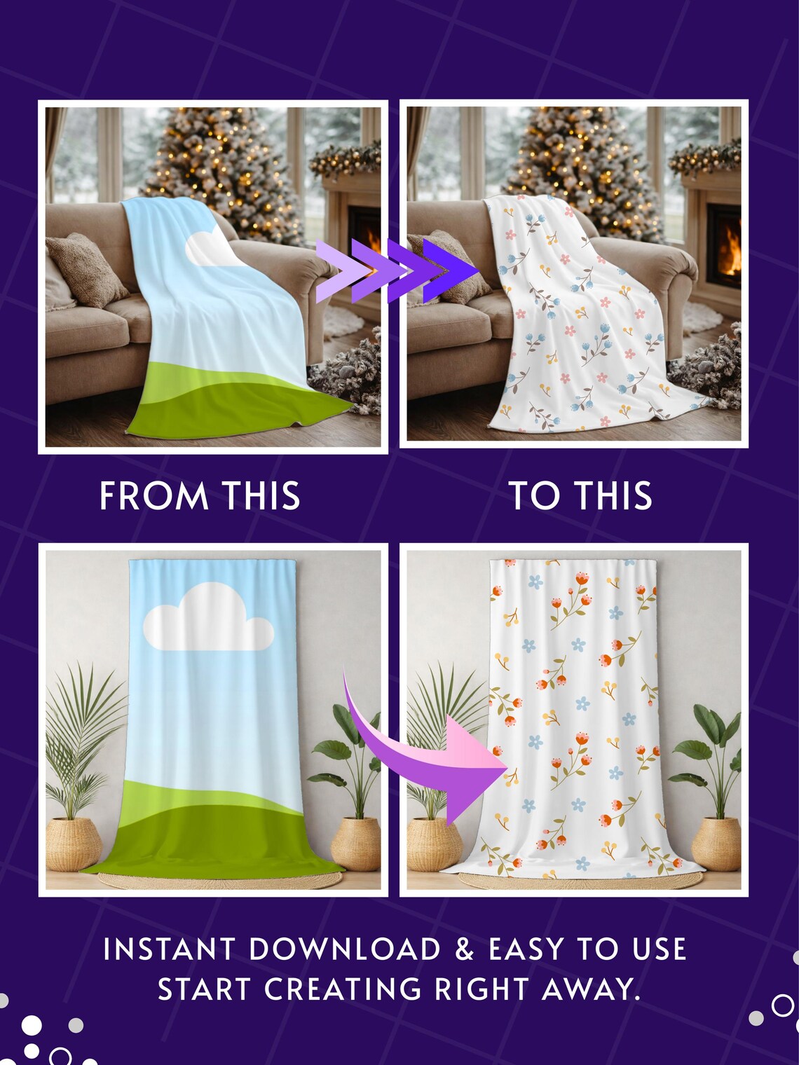 Whether you sell throw blankets, fleece blankets, or custom designs, these Blanket Mockups, Canva Templates, and Editable Mockup Scenes will elevate your product presentation instantly.