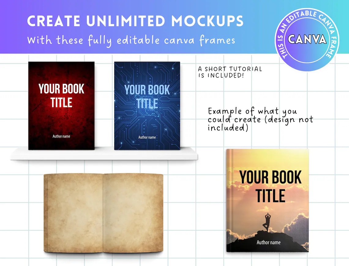 – 7 book mockups Canva Frame Template.