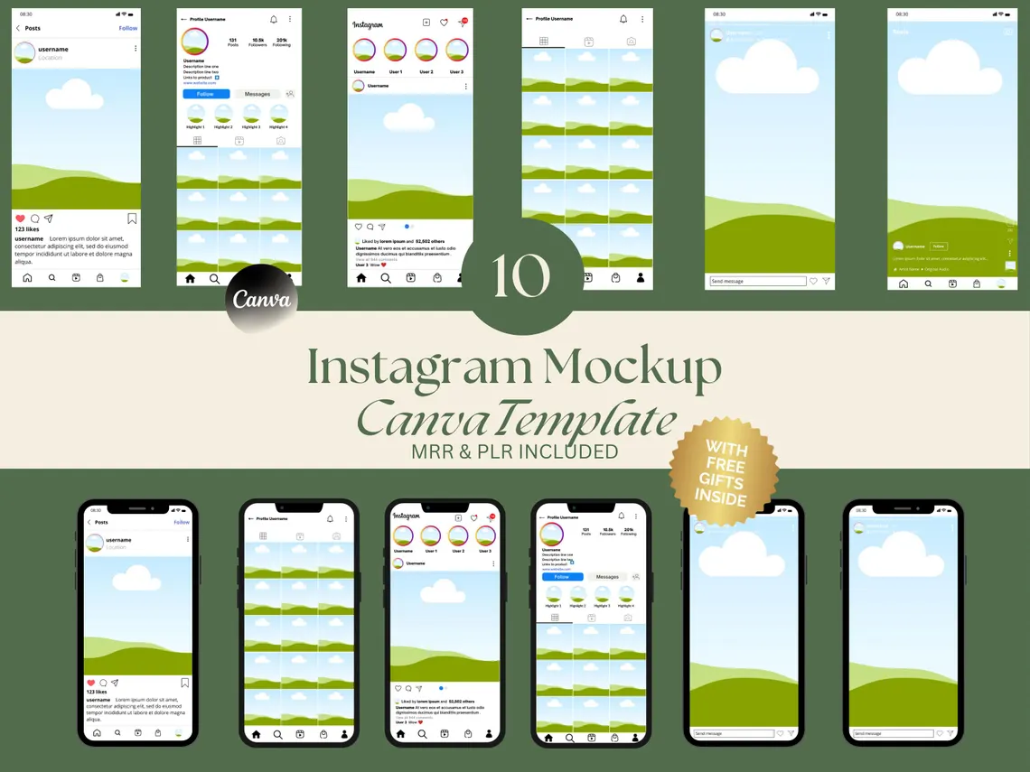 Instagram Mockup Template | Canva Editable with Free Gifts + MRR & PLR License