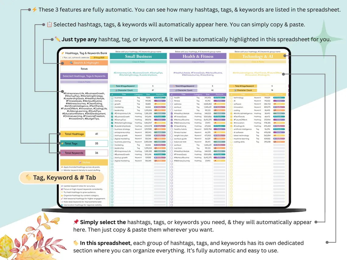π·οΈ Hashtags, Tags & Keywords Bank β Organize hashtags and keywords in one central place