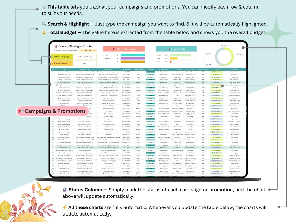 π― Goals & Strategies Tracker β Define your goals, outline strategies, and stay aligned with your content plan
