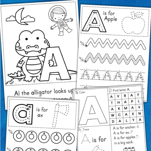 This set of printable worksheets (182 pages) is designed to help young children learn the letters of the alphabet. They include upper and lowercase letter identification, letter formation handwriting practice, and letter sounds.